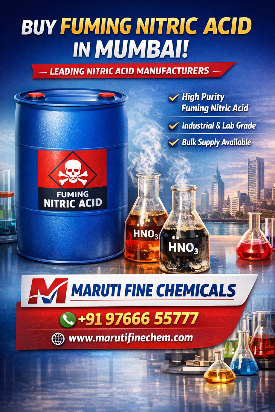 This blog explains why industries prefer to buy fuming nitric acid in Mumbai from trusted nitric acid manufacturers. It highlights the importance of purity, safety, regulatory compliance, and reliable supply, while showcasing Ambernath as a strategic industrial location. The article also covers usage benefits, safe handling practices, and why established suppliers like Maruti Fine Chemicals ensure consistent quality and dependable logistics for industrial operations.